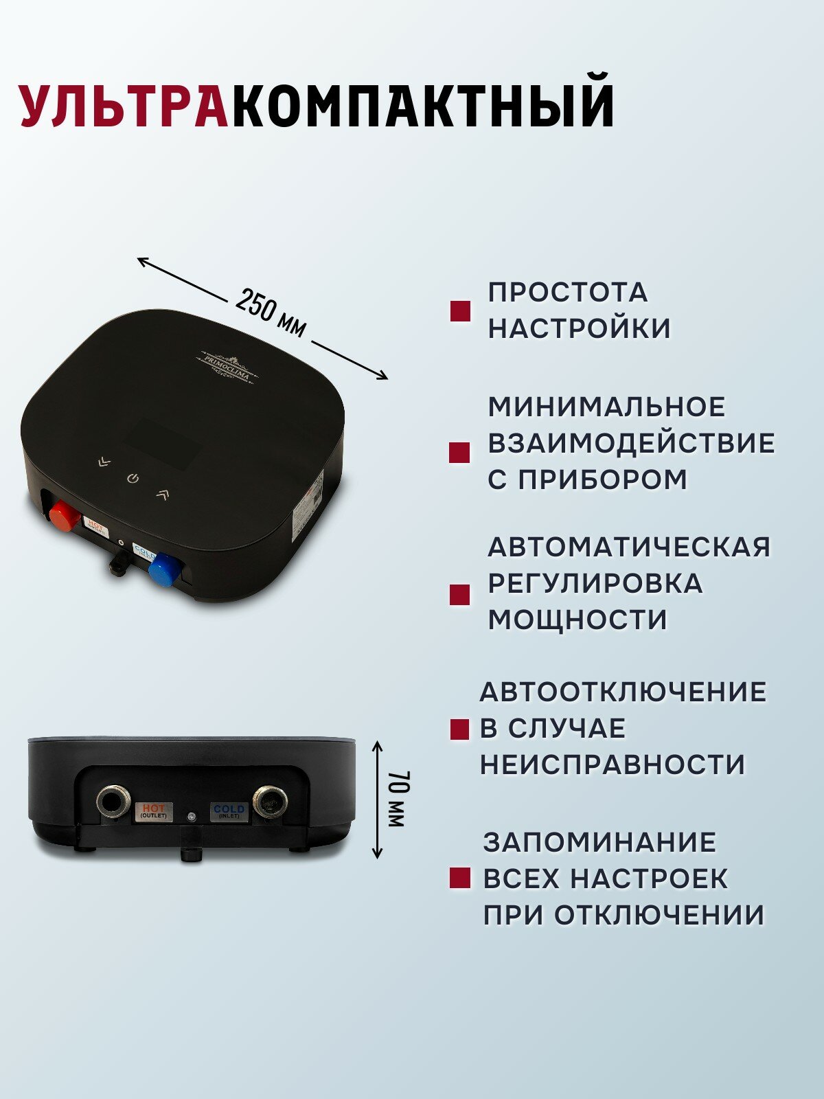 Купить Электрический проточный водонагреватель PRIMOCLIMA THERMA 5.5 кВт, черный с доставкой по всей России. Электрический проточный водонагреватель PRIMOCLIMA THERMA 5.5 кВт, черный: сравнение цен, характеристики, фото, актуальное наличие и цены.