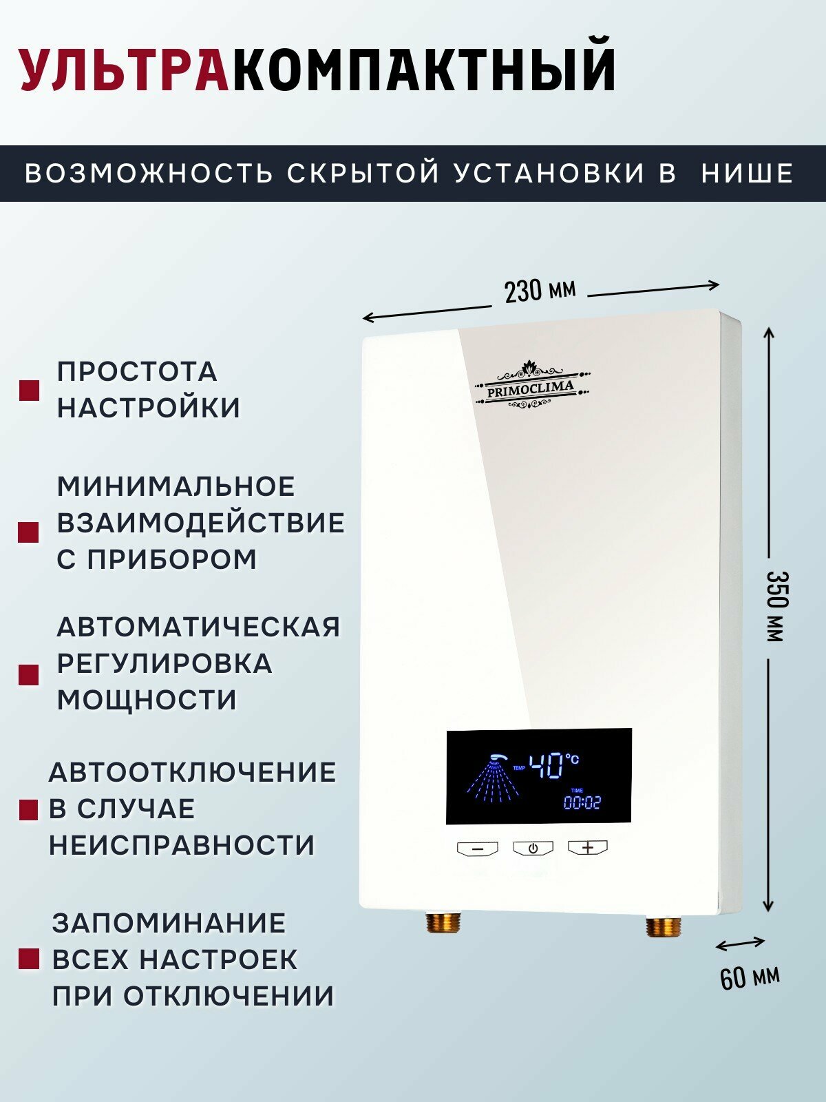Купить Электрический проточный водонагреватель PRIMOCLIMA VITA 8.5 кВт, белый с доставкой по всей России. Электрический проточный водонагреватель PRIMOCLIMA VITA 8.5 кВт, белый: сравнение цен, характеристики, фото, актуальное наличие и цены.