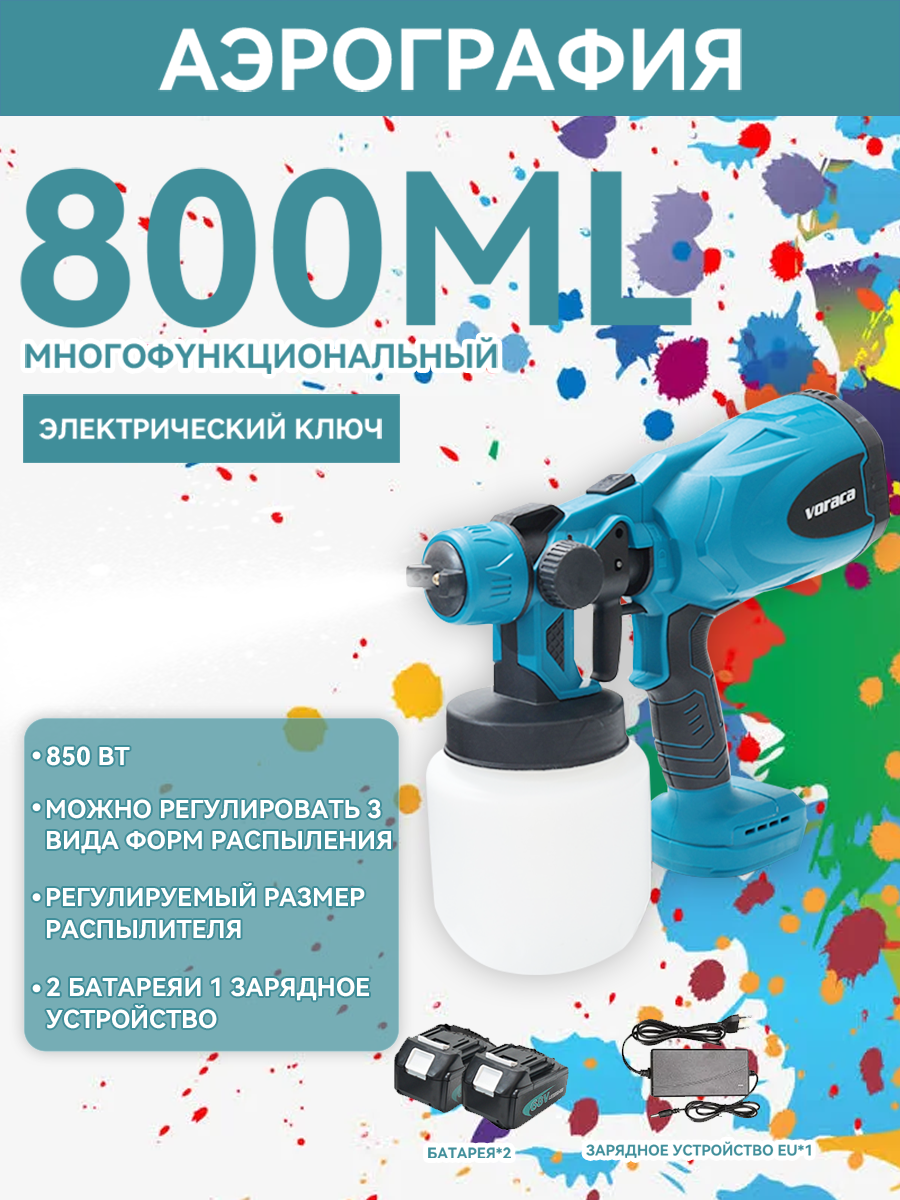 | Комплектация | 1 x распылитель краски 2 x аккумуляторы 1 x зарядных устройства |