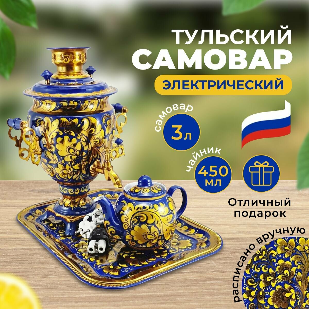 Электрический самовар Хохлома синяя Кудрина, форма Желудь, 3 литра: сравнение цен, характеристики, фото, актуальное наличие и цены.