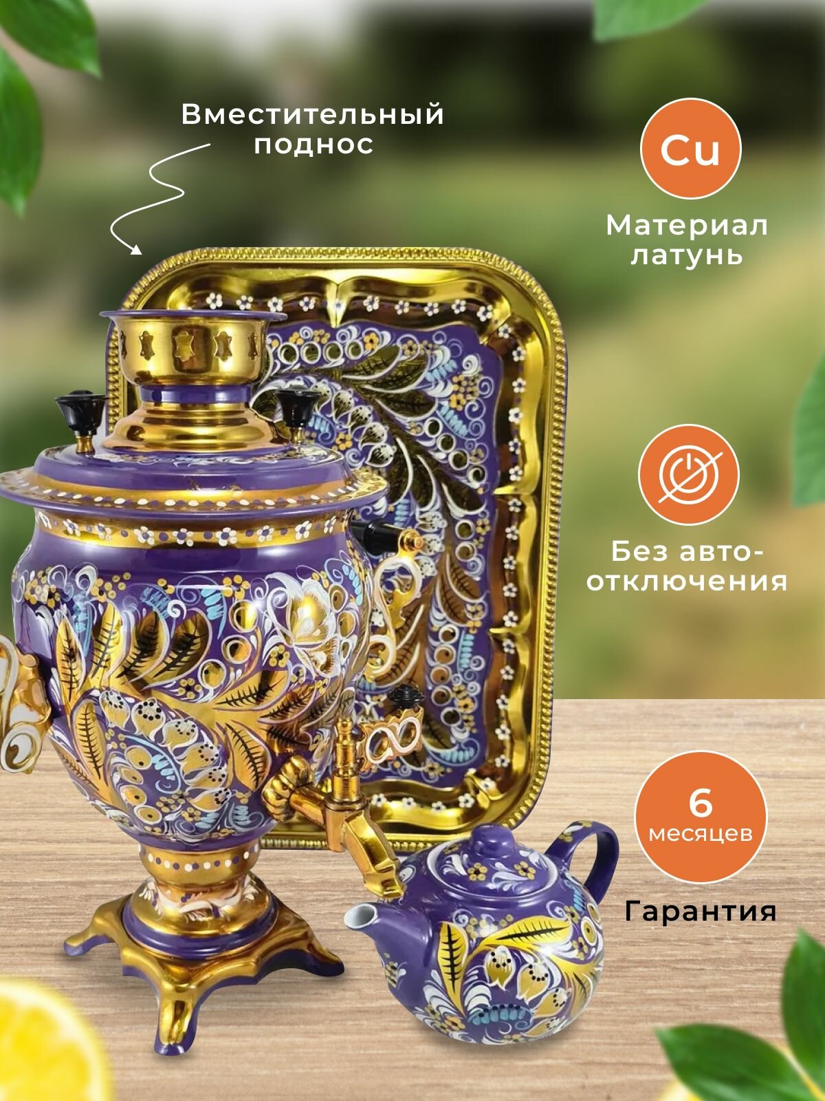 Электрический самовар тульский , фиолетовый Ландыши, форма Желудь, 3 литра: сравнение цен, характеристики, фото, актуальное наличие и цены.