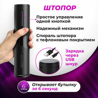 комплектация: Электрический штопор; Нож для фольги; Вакуумная пробка; Аэратор; Usb шнур; Подставка