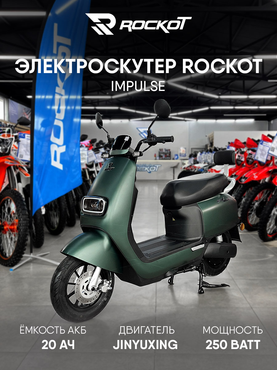 Электрический скутер ROCKOT IMPULSE (зеленый матовый): сравнение цен, характеристики, фото, актуальное наличие и цены.
