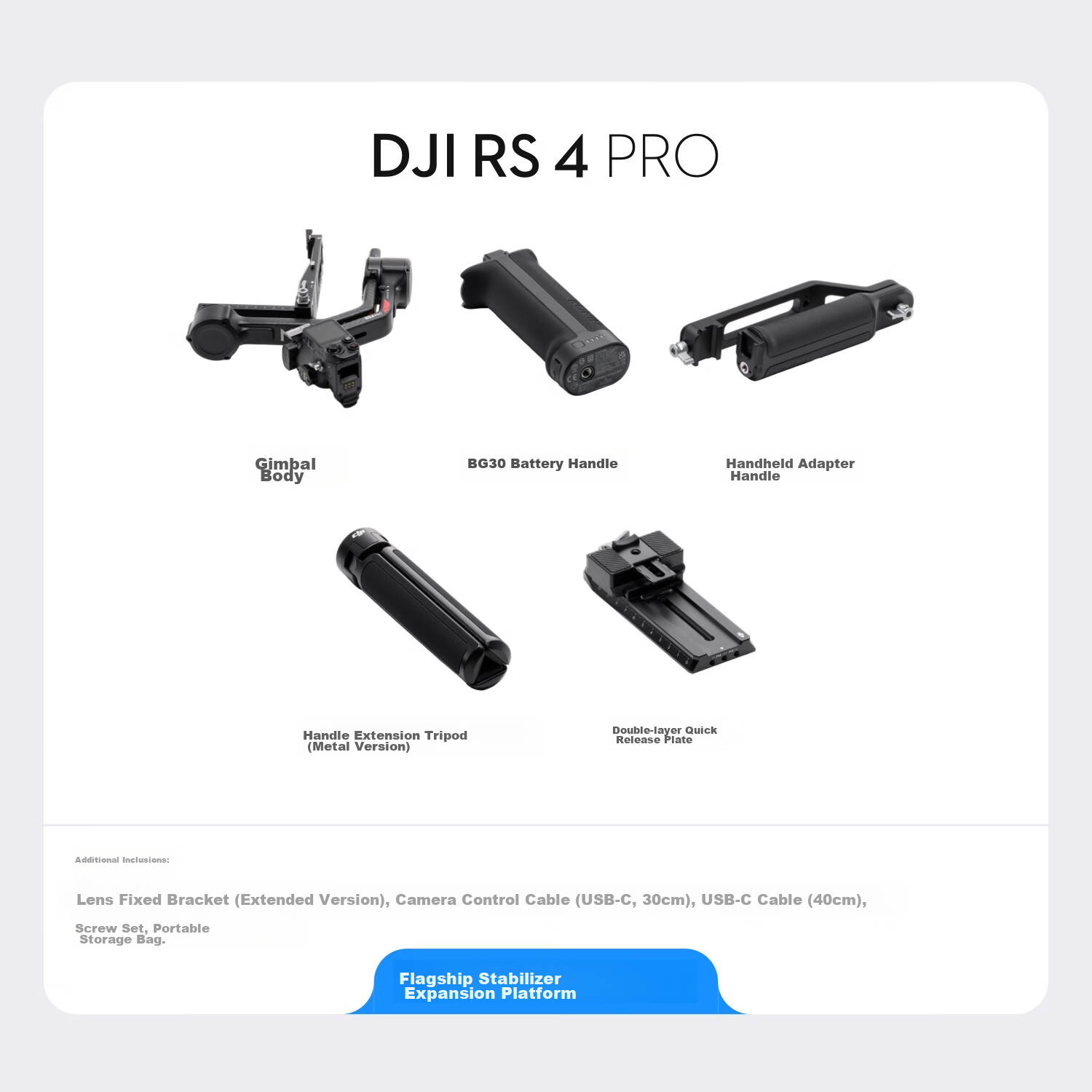 Электрический стабилизатор DJI RS 4 Pro для зеркальной камеры, 3х осевой, черный: сравнение цен, характеристики, фото, актуальное наличие и цены.
