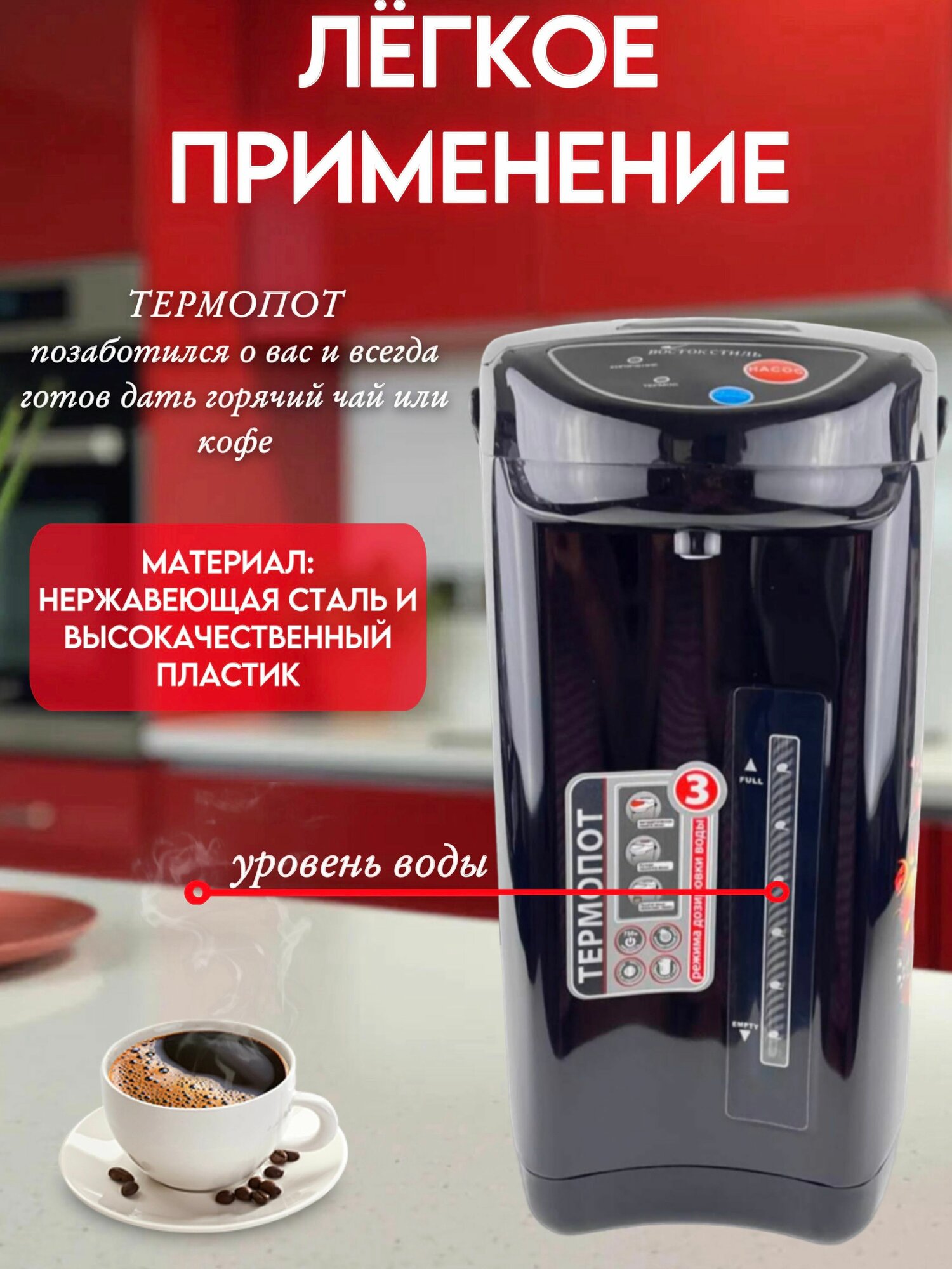 Электрический термопот 3,8 л от бренда Восток Стиль: сравнение цен, характеристики, фото, актуальное наличие и цены.