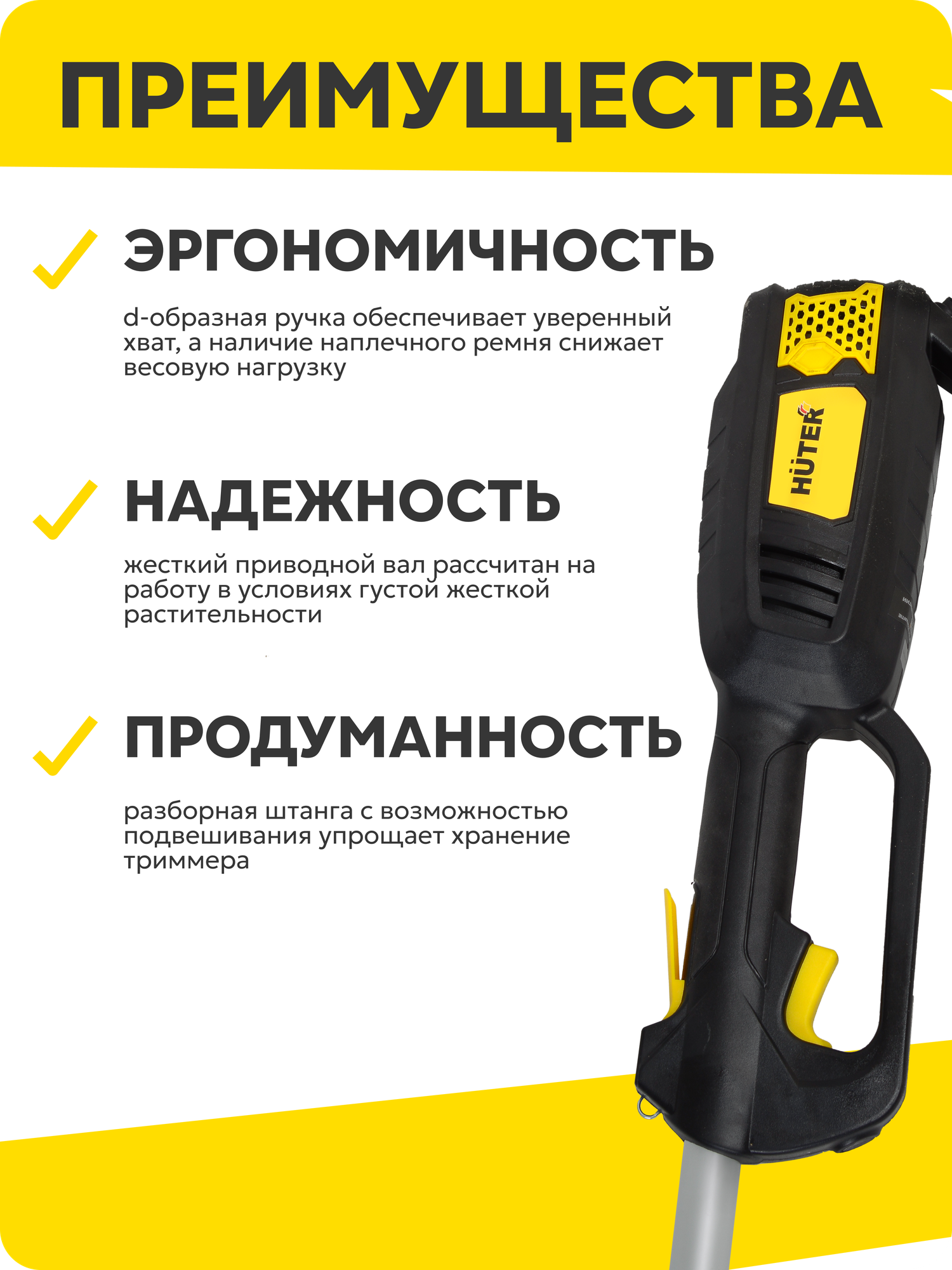 Купить Электрический триммер HUTER GET 2 MAX, 1200 Вт, 2.4 мм, 8000 об/мин с доставкой по всей России.