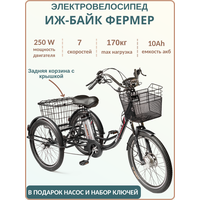 Электрический трёхколёсный велосипед для взрослых Иж-Байк Фермер, грузовой, 7 скоростей, 250 Вт, 2025, чёрный: сравнение цен, характеристики, фото, актуальное наличие и цены.
