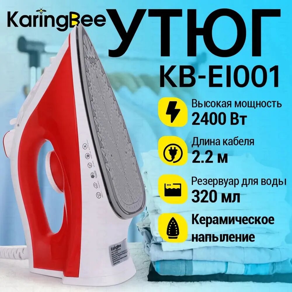 Электрический утюг KARINGBEE KB-EI001, 2400 Вт, красный, керамическая подошва: сравнение цен, характеристики, фото, актуальное наличие и цены.