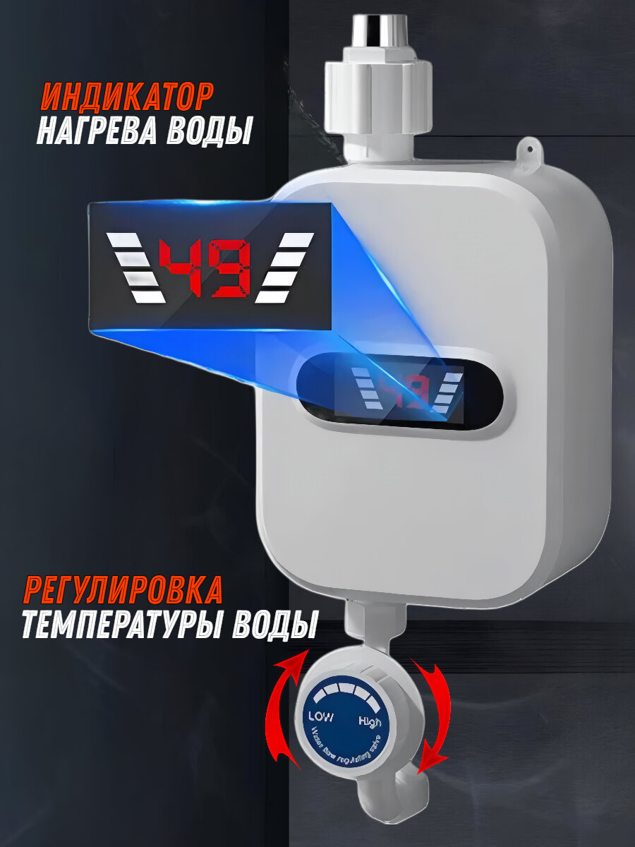 LED дисплей водонагревателя показывает температуру нагрева воды, которую можно регулировать с помощью регулятора интенсивности мощности нагрева. Это позволяет настроить комфортную температуру воды для каждого пользователя.