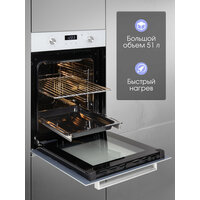 На встраиваемую духовку E 174 W действует гарантия по системе 3+2, где первые три года товар находится на полном гарантийном обслуживании, а затем два года есть возможность получить запчасти бесплатно