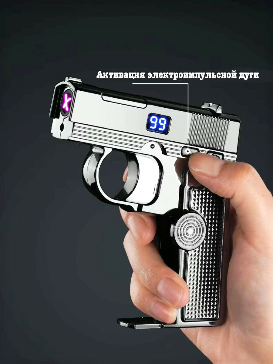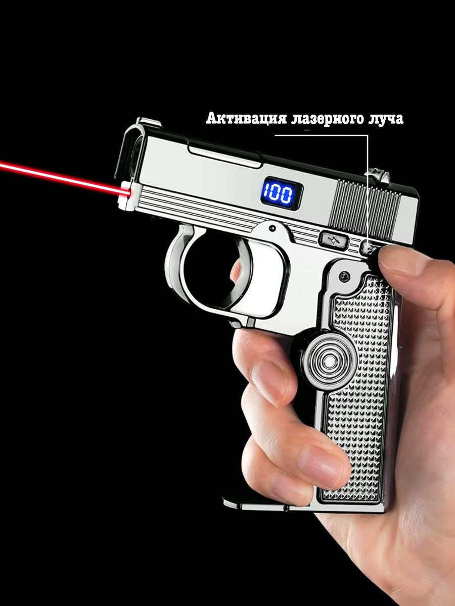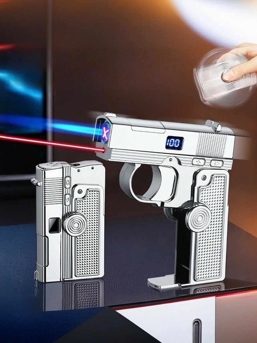 Электро-пьезозажигалка спиннер-пистолет с лазером, серебристый: сравнение цен, характеристики, фото, актуальное наличие и цены.