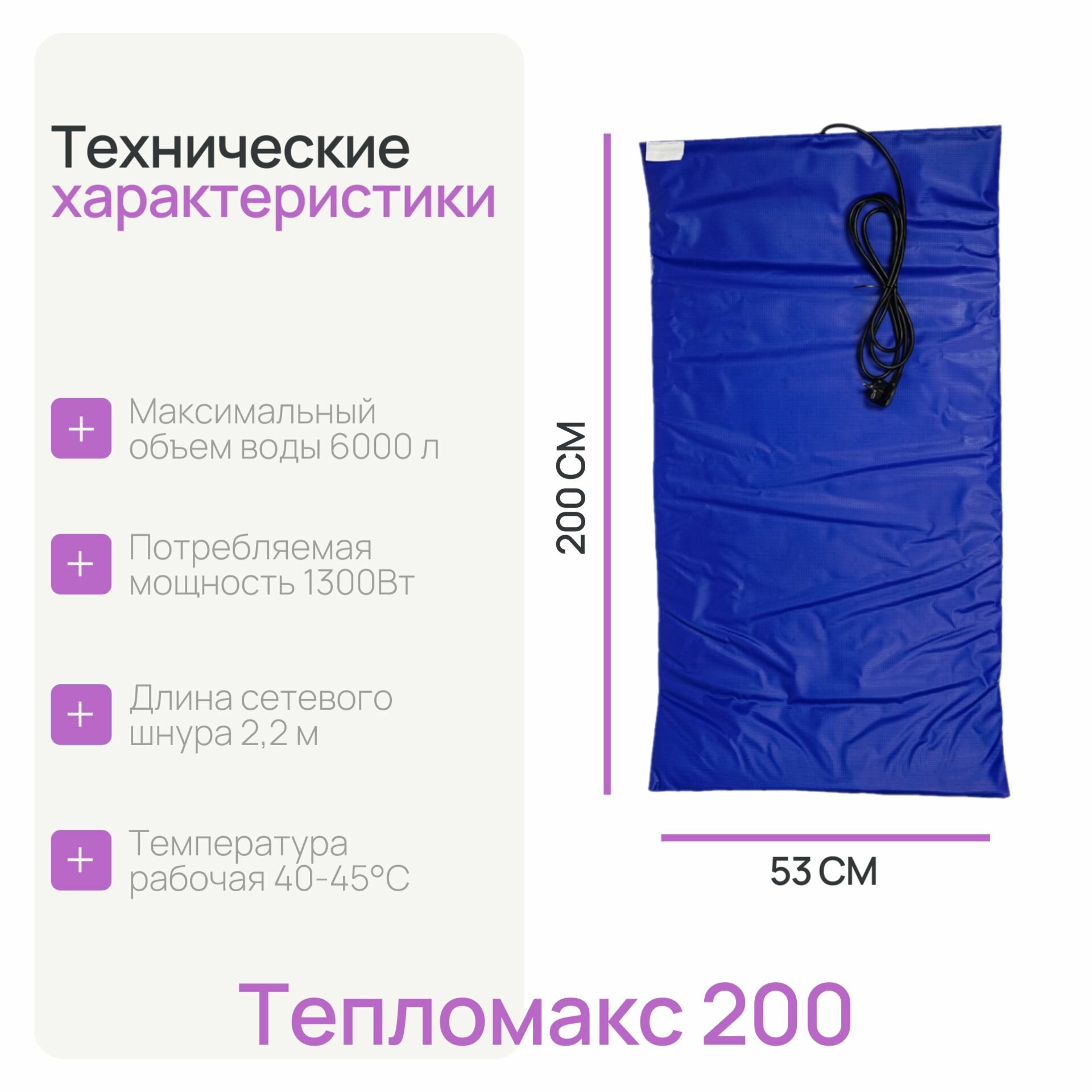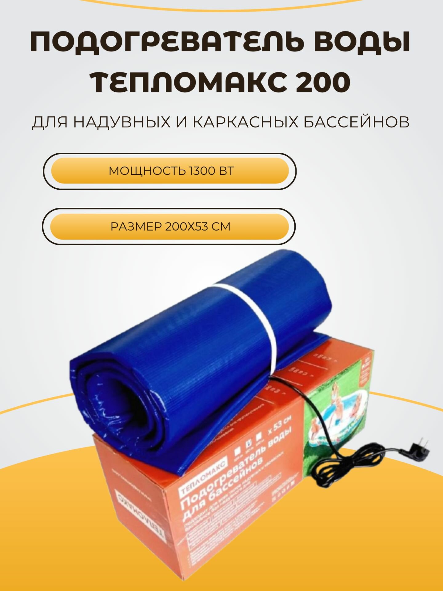 | Дополнительная информация | температура при кратковременном включении в сеть без установки под бассейн до 90C, рабочая температура при установке под бассейном с водой 40-45С; длина сетевого шнура 2,2 м |