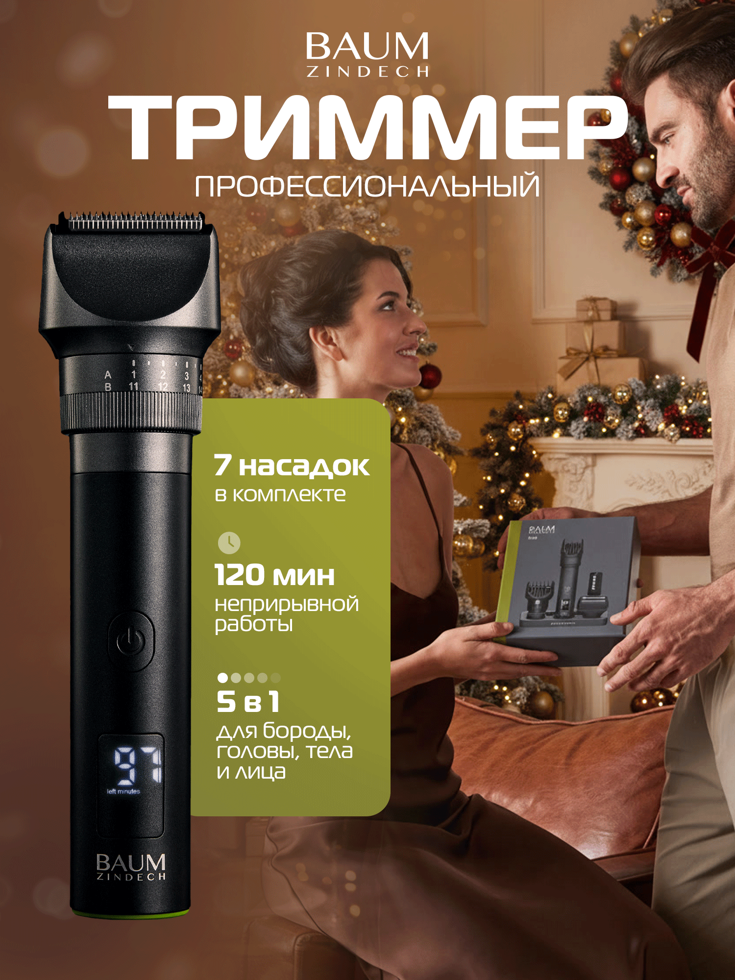 быстрая зарядка, дисплей, для чувствительной кожи, насадка для стрижки волос, питание от USB, триммер