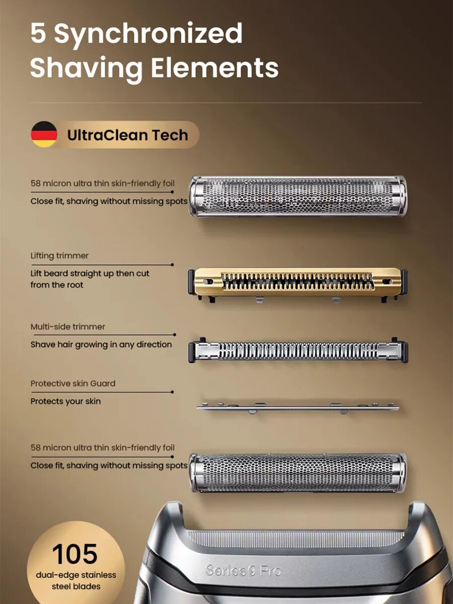 Электробритва Braun S9-PRO 9619S, сеточная, плавающая головка, водонепроницаемый корпус: сравнение цен, характеристики, фото, актуальное наличие и цены.