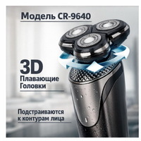 Выбирая CR-9640, вы получаете функциональный прибор с современными технологиями, удобством использования и стильным дизайном. Бритва сочетает в себе мощность, комфорт и практичность — именно то, что нужно для уверенного и аккуратного образа каждый день.