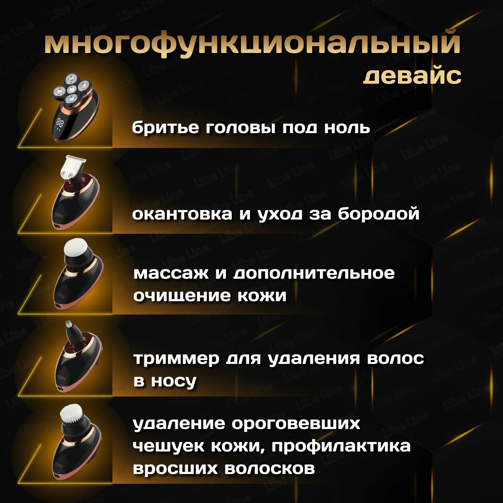 ▪Целых 5 движущихся бритвенных головок, которые бреют под 0 волосы на бороде и голове! Их очень легко чистить и мыть.