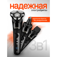 Электробритва , которая станет вашим помощником в уходе за собой. Бритва имеет высококачественный корпус и элегантный внешний вид. Подходит для наведения порядка бороды, волосы, волос, носа и ушей. Особенности и преимущества: Насадка триммер применяются для стрижки и оконтовки волос. Стрижку можно делать самому и без проблем подровнять волосы даже в задней части головы. Вы получаете больше вариантов и более качественную проработку каждой отдельной зоны. Насадка для бритья аккуратно и гладко бреет бороду и усы без раздражения, ровняет линию края бороды. Насадка для носа и ушей максимально комфортно и осторожно удаляет волосы в носу и ушах. Роторный двигатель - отличается повышенной мощностью в 8 Вт, практически не нагревается и подходит для длительной беспрерывной работы и частой нагрузки. Электронный дисплей - показывает остаточный заряд аккумулятора емкостью 600 mah, вы всегда будете уверены, что успеете завершить начатое, а это 70 минут. Роторный двигатель - отличается повышенной