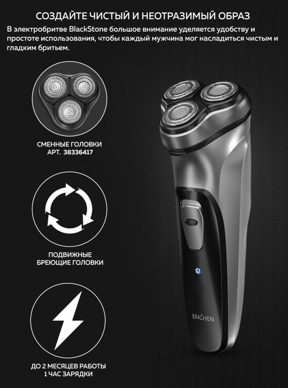 Электробритва мужская Enchen BlackStone Gray, шейвер роторная бритва для мужчин электрическая с плавающими головками для сухого и влажного бритья, серая / Подарок мужчине, парню: сравнение цен, характеристики, фото, актуальное наличие и цены.