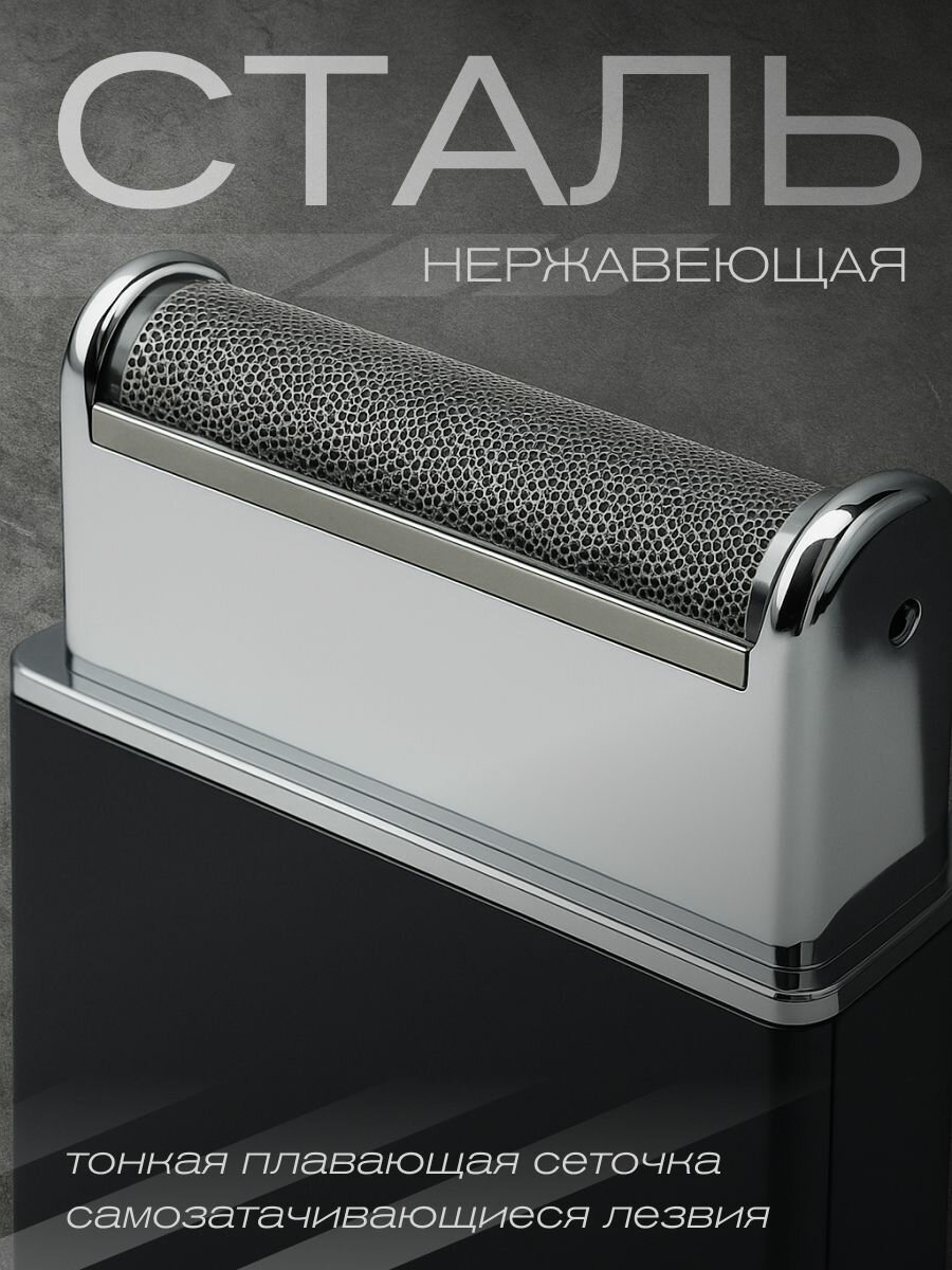 Электробритва для мужчин нового поколения, имеет стильный и современный дизайн! Портативный шейвер разработан для сухого бритья щетины длиной до 2 мм. Модель предусматривает комбинированный тип питания - работает как от стандартной сети, так и от аккумулятора с непрерывной автономном работой до 30 минут. Светодиодный индикатор зарядки информирует о процессе питания батареи. Электрическая бритва имеет роторный мотор - выдает до 5500 оборотов в минуту и обеспечивает чистое сухое бритье щетины. Ширина ножа шейвера составляет 40 мм. Комплектация предусматривает запасной нож и сетку. Шейвер мужской незаменим в поездках и при выполнении финишных работ в парикмахерских и барбершопах для подчистки оставшихся после окантовки волосков. В комплекте USB кабель для зарядки, щеточка для чистки, насадка. Блок питания в копмлект НЕ входит! Есть индикатор заряда. Сменный пластинчатый нож и бритвенная сеточка аккумуляторной бритвы заменяются без дополнительных инструментов. Электробритва для жесткой щетины! Приятный на ощупь корпус бритвы с противоскользящим покрытием Soft Touch удобно лежит в руке и не выскальзывает. Компактная бритва шейвер для акантовки и сухого бритья.