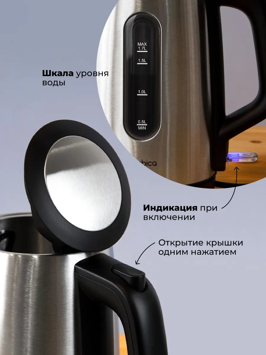 Купить Электрочайник Rombica KE-0002, 2200Вт, 1,7л, нержавеющая сталь, блокировка без воды с доставкой по всей России.
