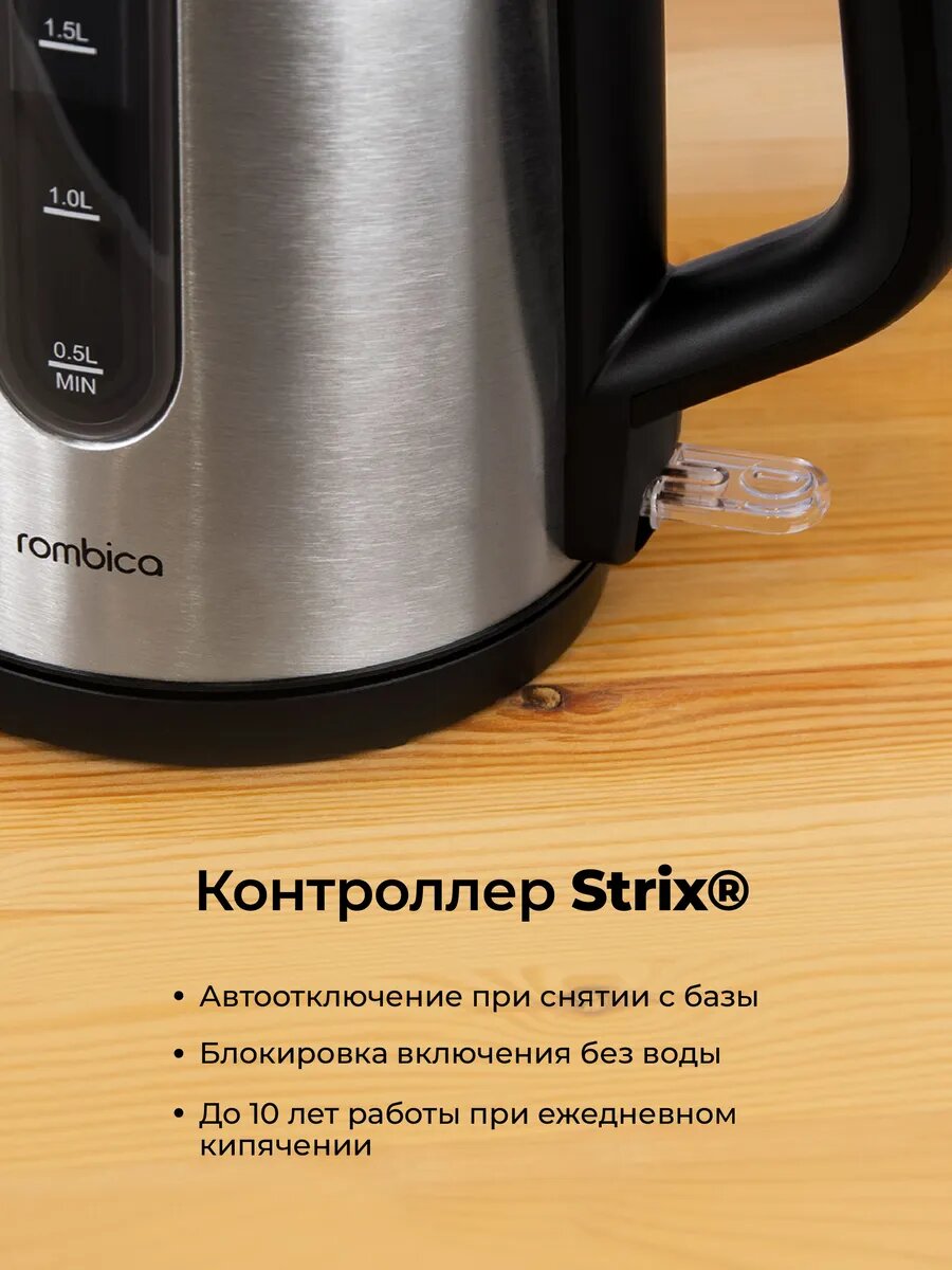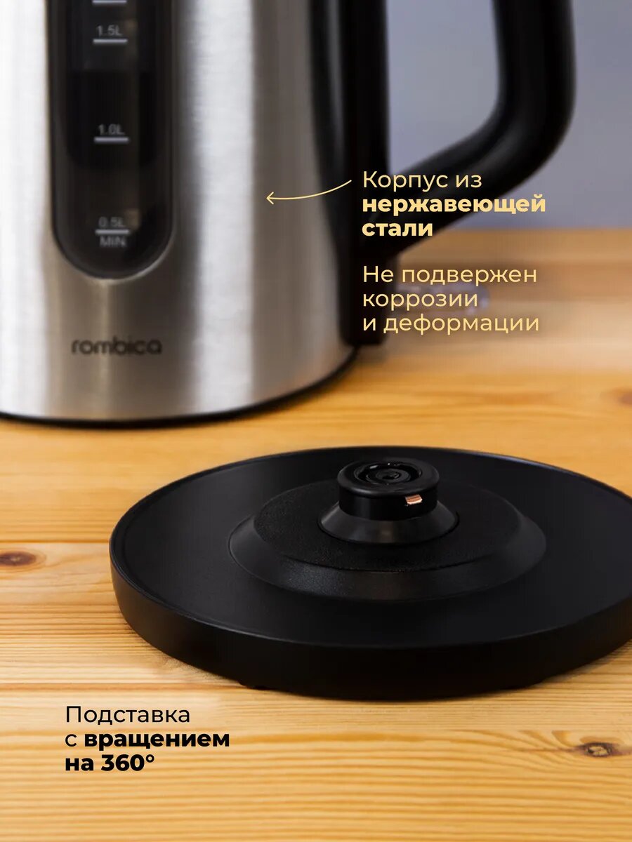 Электрочайник Rombica KE-0002, 2200Вт, 1,7л, нержавеющая сталь, блокировка без воды: сравнение цен, характеристики, фото, актуальное наличие и цены.
