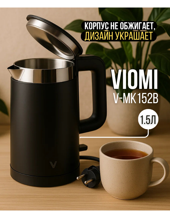 Купить Чайник Viomi Mechanical Kettle, 1.5л, 1800Вт, автооткл, блокировка, вращение на 360, двойной корпус с доставкой по всей России.