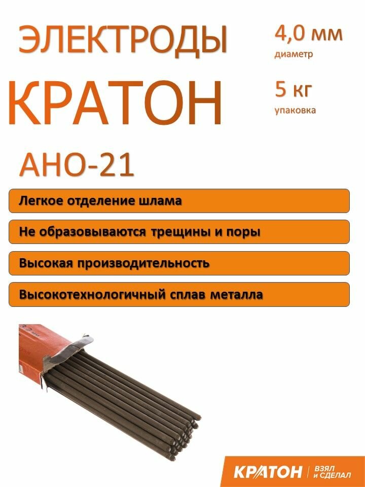 Купить Электрод для дуговой сварки Кратон 4.0 мм, 5 кг AHO-21 с доставкой по всей России. Электрод для дуговой сварки Кратон 4.0 мм, 5 кг AHO-21: сравнение цен, характеристики, фото, актуальное наличие и цены.