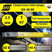 Тип покрытия у электродов есаб ок 46.00 – рутилово-целлюлозное. Уникальные в своем классе электроды esab ok 46.00, обладающий великолепными сварочно-технологическими характеристиками, предназначенный для сварки конструкций из низкоуглеродистых и низколегированных сталей с пределом текучести до 380 МПа во всех пространственных положениях на постоянном токе обратной полярности и переменном токе. Электрод отличается относительно слабой чувствительностью к ржавчине, грунтовке, цинковым покрытиям и т. п. загрязнений поверхности изделий, легкостью отделения шлака и формированием гладкой поверхности наплавленного валика с плавным переходом к основному металлу. Благодаря легкости, как первого, так и повторных поджигов, электрод незаменим для сварки короткими швами, прихваток и сварке с периодическими обрывами дуги. В отличие от большинства рутиловых электродов, благодаря возможности выполнять сварку в положении «вертикаль на спуск» в сочетании со значительно более низкими пороговыми значениями минимального тока, при котором стабильно горит дуга, ОК 46.00 позволяют выполнять сварку тонкостенных изделий. Низкое напряжение холостого хода и стабильное горение дуги на предельно малых токах позволяет использовать эти электроды для сварки от бытовых источников. Ток: ~ / = (+ / ̶ )Пространственные положения при сварке: 1, 2, 3, 4, 5, 6 Напряжение холостого хода: 50 В Выпускаемые диаметры: 1,6; 2,0; 2,5; 3,0; 3,2; 4,0 и 5,0 мм Режимы прокалки: 70-90°С, 60 мин