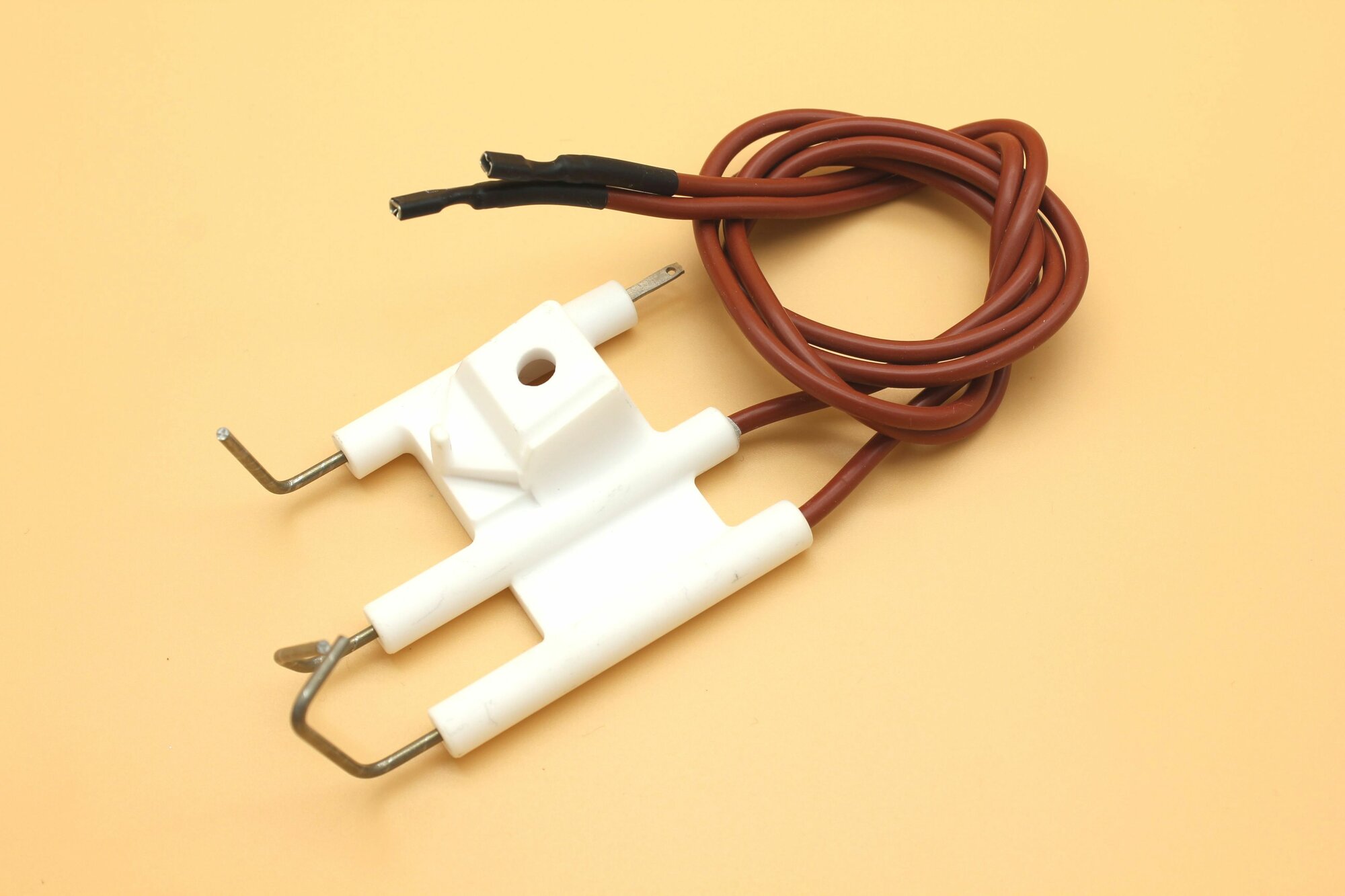 Электрод Vaillant (Вайлант) арт. 090724 устанавливается в горелочной части котла и предназначается для розжига пламени в камере сгорания и определение пламени на горелке. Монтируется электрод на горелке и подключается к сети 220 Вольт. Управление производится с помощью автоматики котла. Электрод изготавливается из медного стержня, который проходит в керамической оболочке, защищающей его внешних воздействий. Приспособление способно выдержать высокие температуры и имеет продолжительный срок службы.