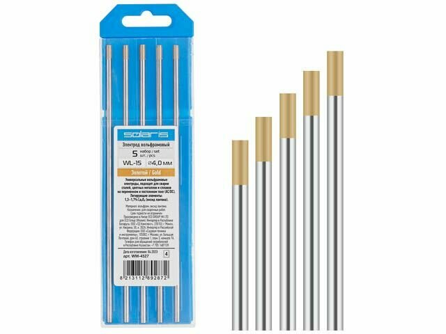 Купить Электрод вольфрамовый для TIG сварки 4 мм SOLARIS WL-15 золотой 5 штук (WM-4527) с доставкой по всей России. Электрод вольфрамовый для TIG сварки 4 мм SOLARIS WL-15 золотой 5 штук (WM-4527): сравнение цен, характеристики, фото, актуальное наличие и цены.