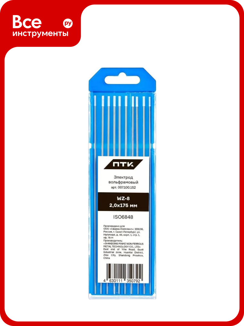 Электрод вольфрамовый WZ-8-175 мм, 2.0 (10 шт. в упаковке) ПТК 00000034911: сравнение цен, характеристики, фото, актуальное наличие и цены.
