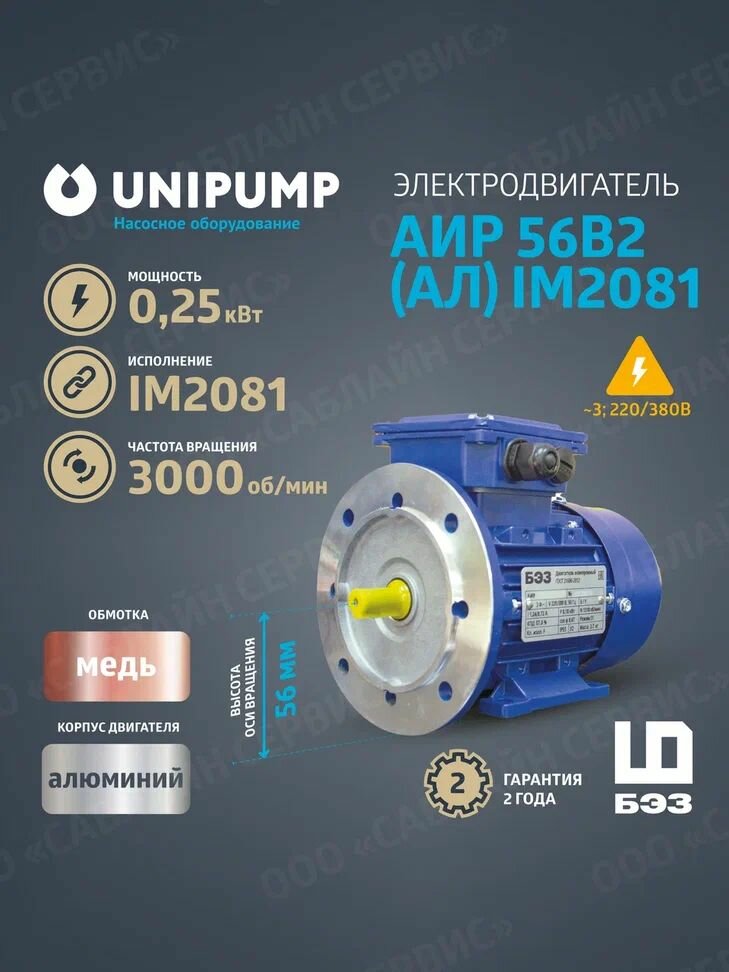 Электродвигатель АИР 56B2 (Алюминий) IM2081 (0,25 кВт/3000 об/мин), корпус алюминий: сравнение цен, характеристики, фото, актуальное наличие и цены.