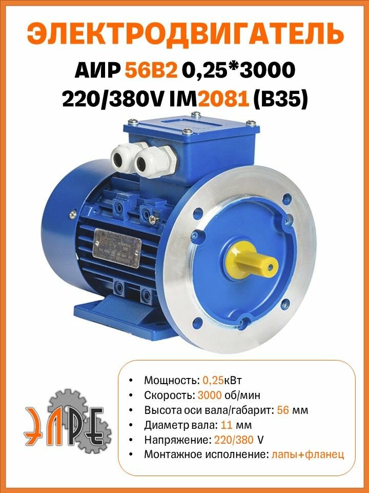 Купить Электродвигатель АИР 56B2 У1 0,25*3000 220/380V B35 с доставкой по всей России. Электродвигатель АИР 56B2 У1 0,25*3000 220/380V B35: сравнение цен, характеристики, фото, актуальное наличие и цены.