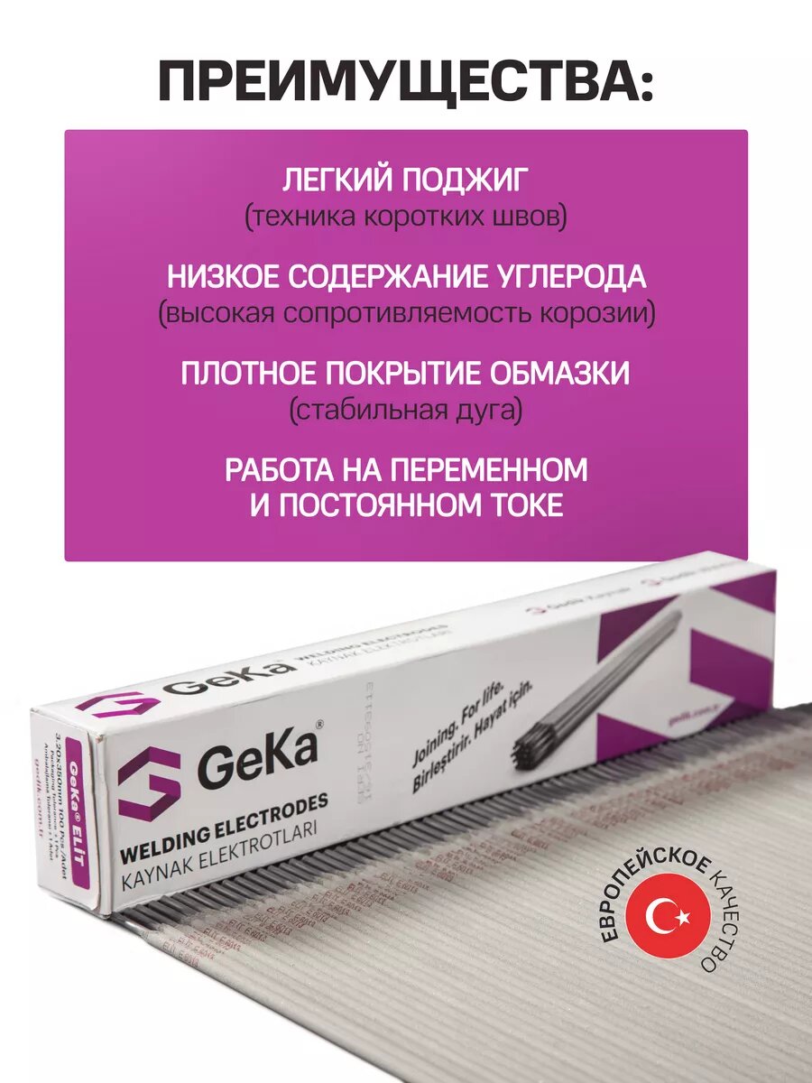 Сварочные электроды GeKa Elit с рутиловым покрытием, соответствующие стандартам AWS Е 6013 и ГОСТ 9467-75, являются отличным выбором для сварки металла, обеспечивая легкий поджиг дуги, малое разбрызгивание и легко отделяемый шлак, что значительно упрощает сварочные работы и повышает их эффективность. Получив сертификат НАКС, эти электроды гарантируют высокую прочность и качественный ровный сварной шов без полостей, а также минимальную переходную зону между швом и основным металлом. Марка Elit - аналог европейских электродов Esab ОК 46, которые подходят для сварочных работ на предельно низких токах 60 – 110 (А) и не требуют подготовки перед сваркой. Это делает их идеальными для тех, кто хочет попробовать надежные расходные сварочные материалы, обеспечивающие высокую стойкость к образованию трещин, пор и пустот в сварочной ванной, в том числе превосходную эластичность сварного шва. Данные сварочные электроды помогут вам добиться качественных результатов при минимальных затратах, идеально подойдут как для профессиональных сварщиков, так и для тех, кто ищет доступные и надежные электроды для пробной сварки.
