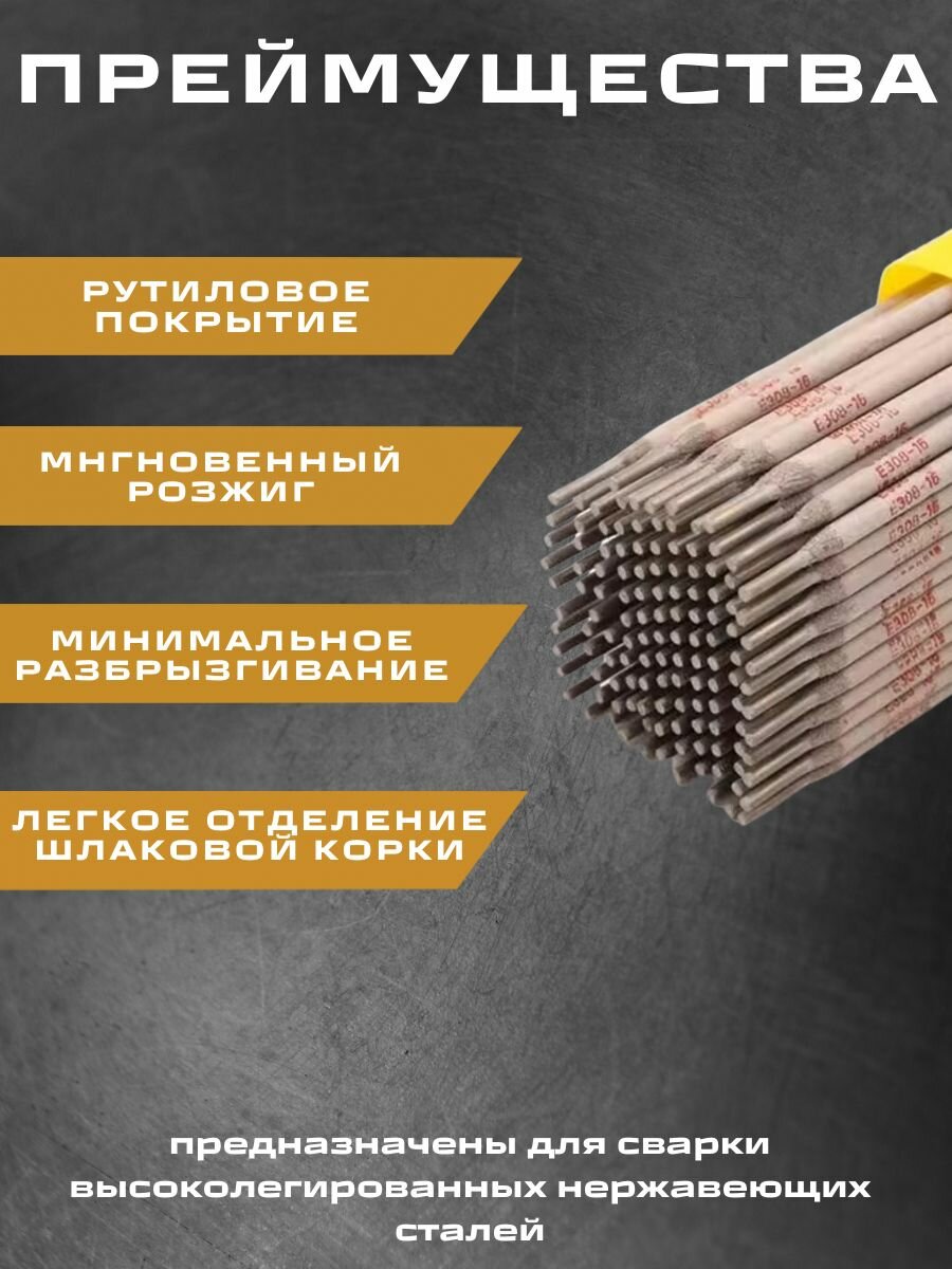 Электроды E308-16 являются заменой российской марки ОЗЛ-8 предназначены для сварки высоколегированных нержавеющих сталей. Используются при ручной дуговой сварке, постоянным током обратной полярности. Область применения : сварка металлоконструкций и другие работы, когда нет повышенных требований к качеству шва. Электроды для нержавеющих сталей E308-16 применяются: