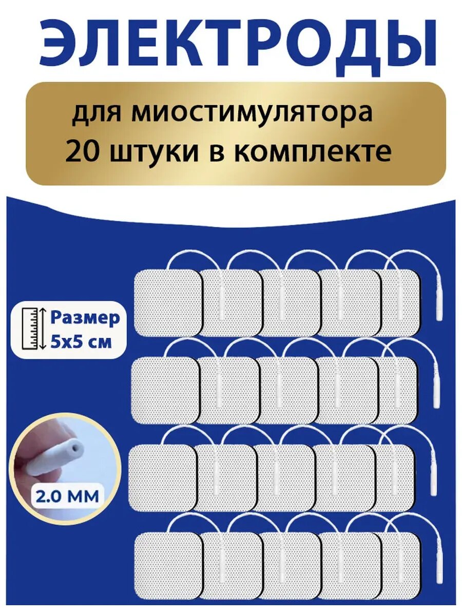 Многоразовые самоклеящиеся электроды, (накладки, липучки) для миостимулятора (массажера) - 20 шт, размер 5x5 см