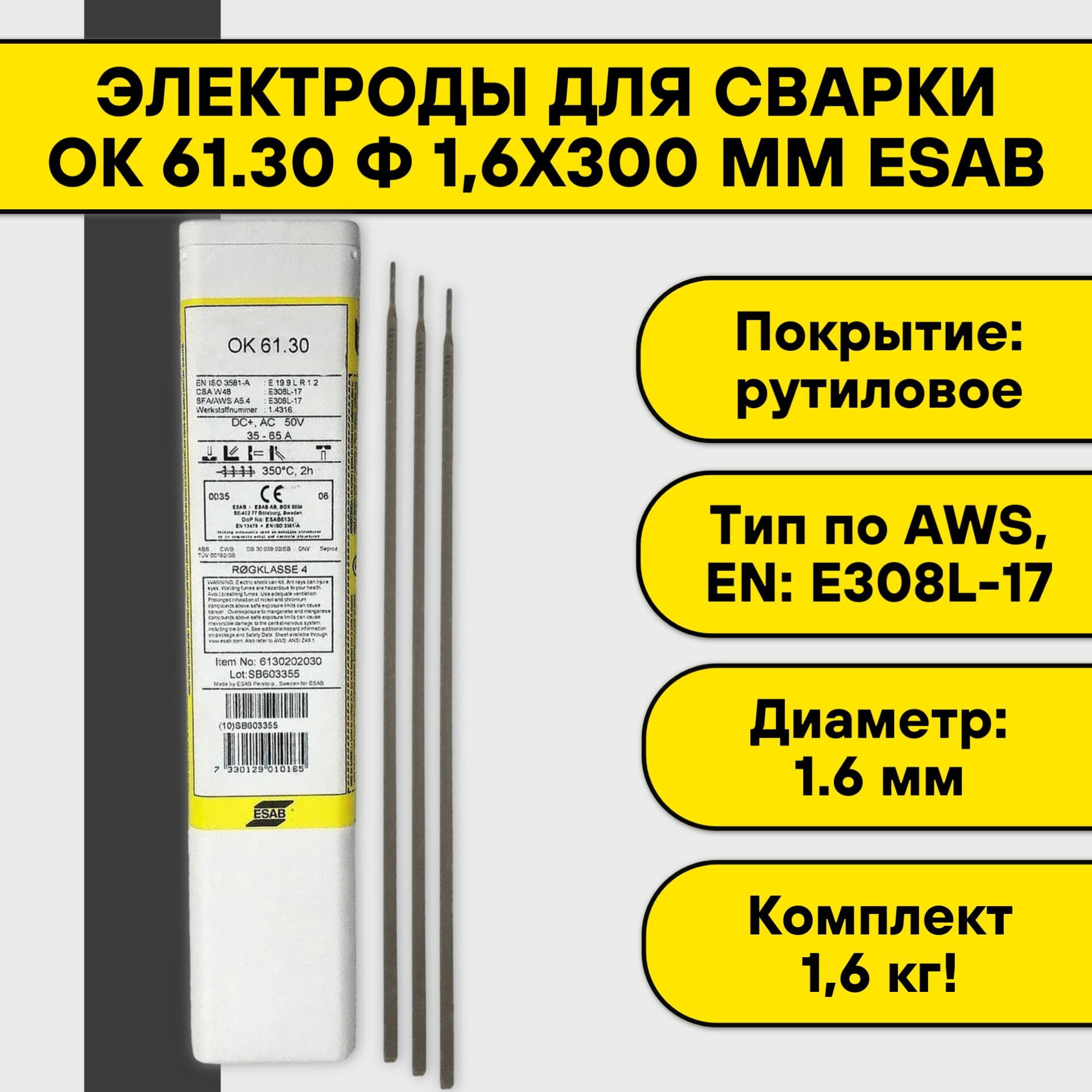 Электроды для сварки OK 61.30 - отличный выбор для профессионалов и домашних мастеров! Данные сварочные электроды OK 61.30 с рутиловым покрытием идеально подходят для сварки. Esab OK 61.30 обеспечивает стабильную электрическую дугу, подходят для сварки в любых положениях, включая сложные монтажные условия. Благодаря теплообеспечению и легкому отделению шлака, они отлично справляются с корневыми швами, прихватками и сваркой на больших зазорах. Электроды обладают высокой устойчивостью и точностью для сварки. Выбор электродов для сварки OK 61.30, всегда надежный и получаете удовольствие от работы!