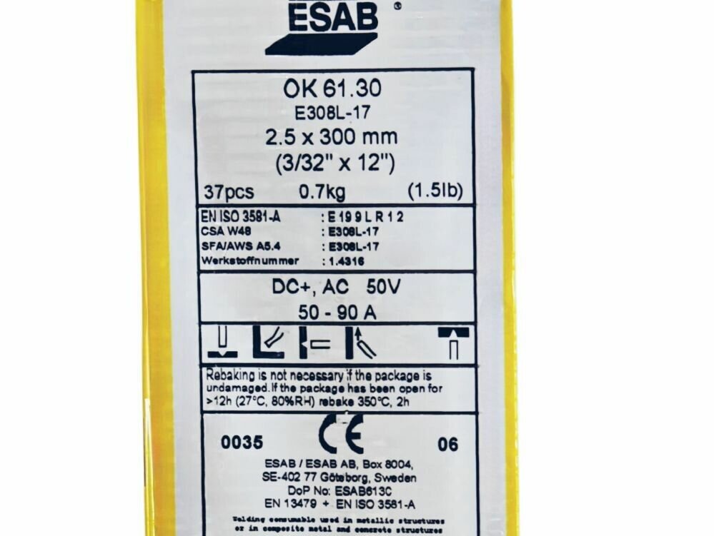 Купить Электроды ESAB ОК 61.30 2.5х300мм E308L-17 (3/32″х12″) (уп. 0,7кг) с доставкой по всей России. Электроды ESAB ОК 61.30 2.5х300мм E308L-17 (3/32″х12″) (уп. 0,7кг): сравнение цен, характеристики, фото, актуальное наличие и цены.