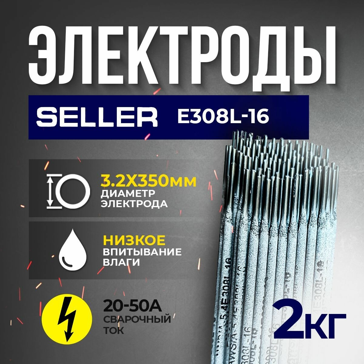 Электроды SELLER E 308L-16 ф 3,2 мм х 350 мм (2,0кг): сравнение цен, характеристики, фото, актуальное наличие и цены.