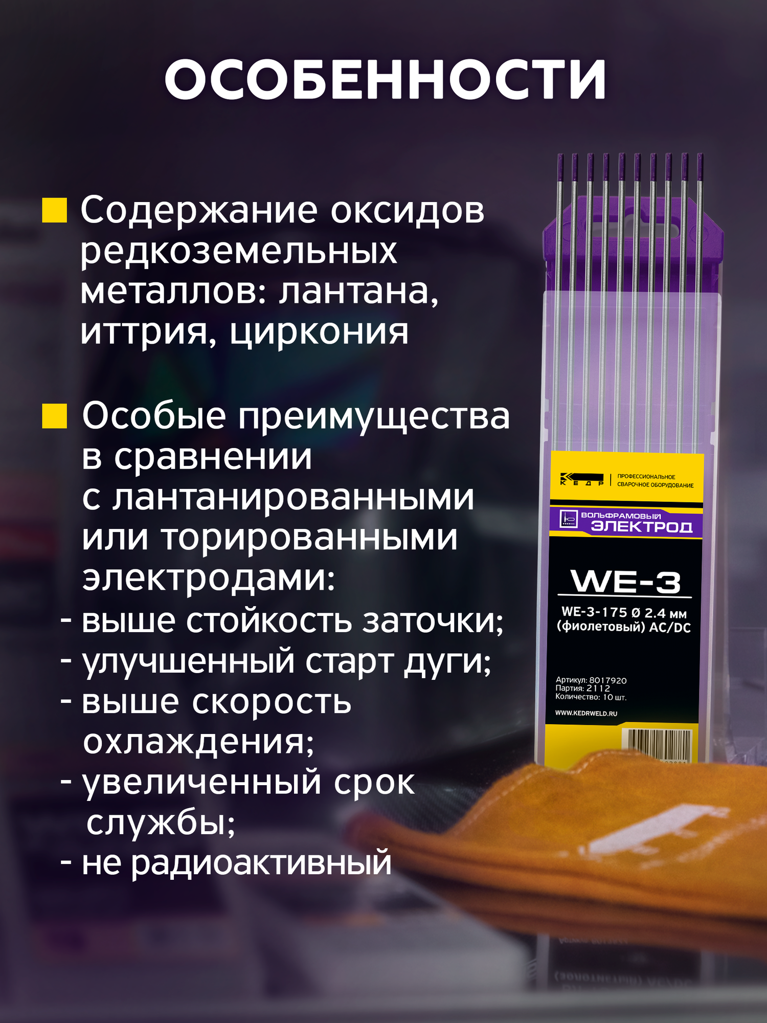 Электроды вольфрамовые кедр WE-3-175 диаметр 2,4 мм (фиолетовый) AC/DC для аргонодуговой сварки (10шт.) 8017920: сравнение цен, характеристики, фото, актуальное наличие и цены.