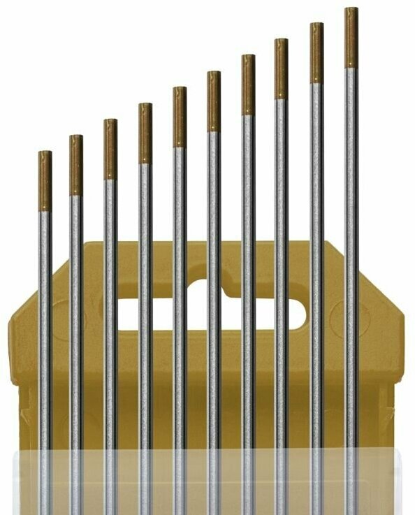 Электроды вольфрамовые WL-15-175, Ø 2,4 мм, цвет золотистый электрод из сплава вольфрама с оксидом лантана имеют очень легкий первоначальный запуск дуги, низкую склонность к прожогам, устойчивую дугу и отличную характеристику повторного зажигания дуги.