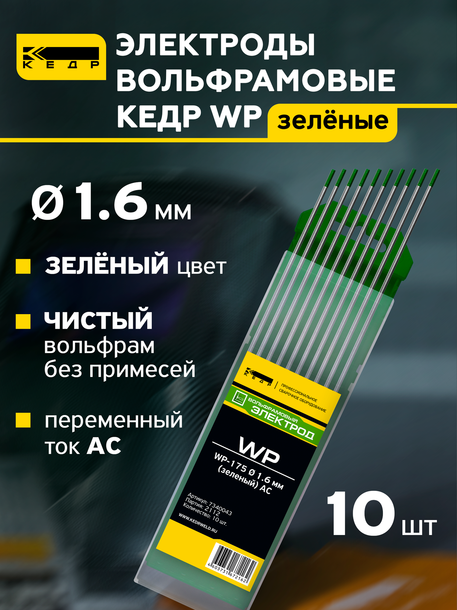 Купить Электроды вольфрамовые кедр WP диаметр 1,6 (Зеленый) для аргонодуговой сварки (10шт.) 7340044 с доставкой по всей России. Электроды вольфрамовые кедр WP диаметр 1,6 (Зеленый) для аргонодуговой сварки (10шт.) 7340044: сравнение цен, характеристики, фото, актуальное наличие и цены.
