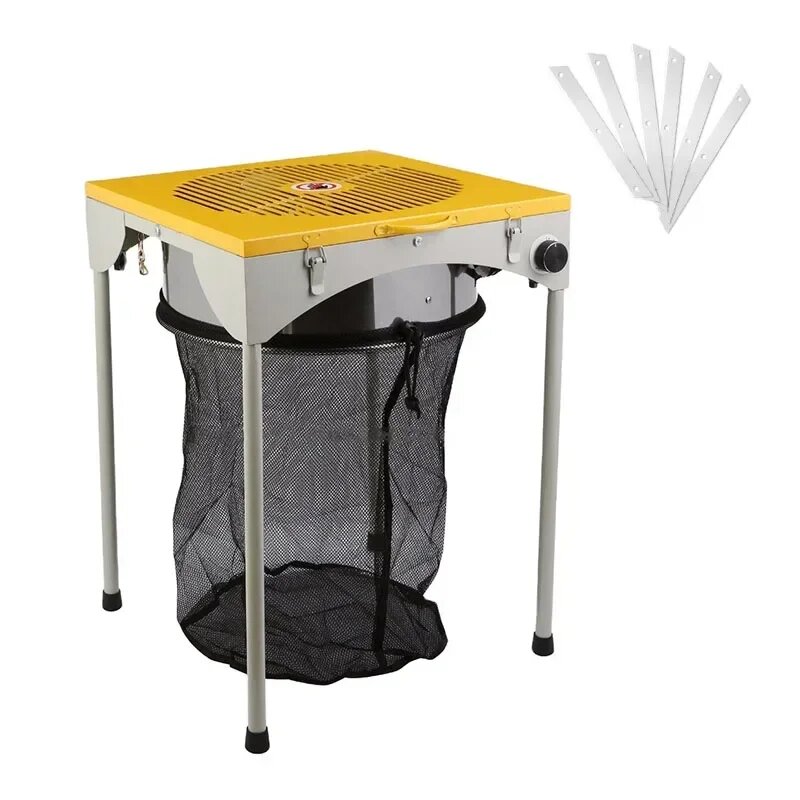 Технические характеристики:Мощность: 60 Вт Источник питания: 220 В 60 Гц Электрический шнур: 7,5 футов Лопастной вентилятор: 15 дюймов Размер продукта: 18 х 18 х 26 дюймов 6 дополнительных режущих лезвийСодержимое упаковки:Электрический настольный триммер x 1 Шнур питания 7,5 фута x 1 Многоразовая коллекционная сумка x 1 Дополнительные режущие лезвия x 6