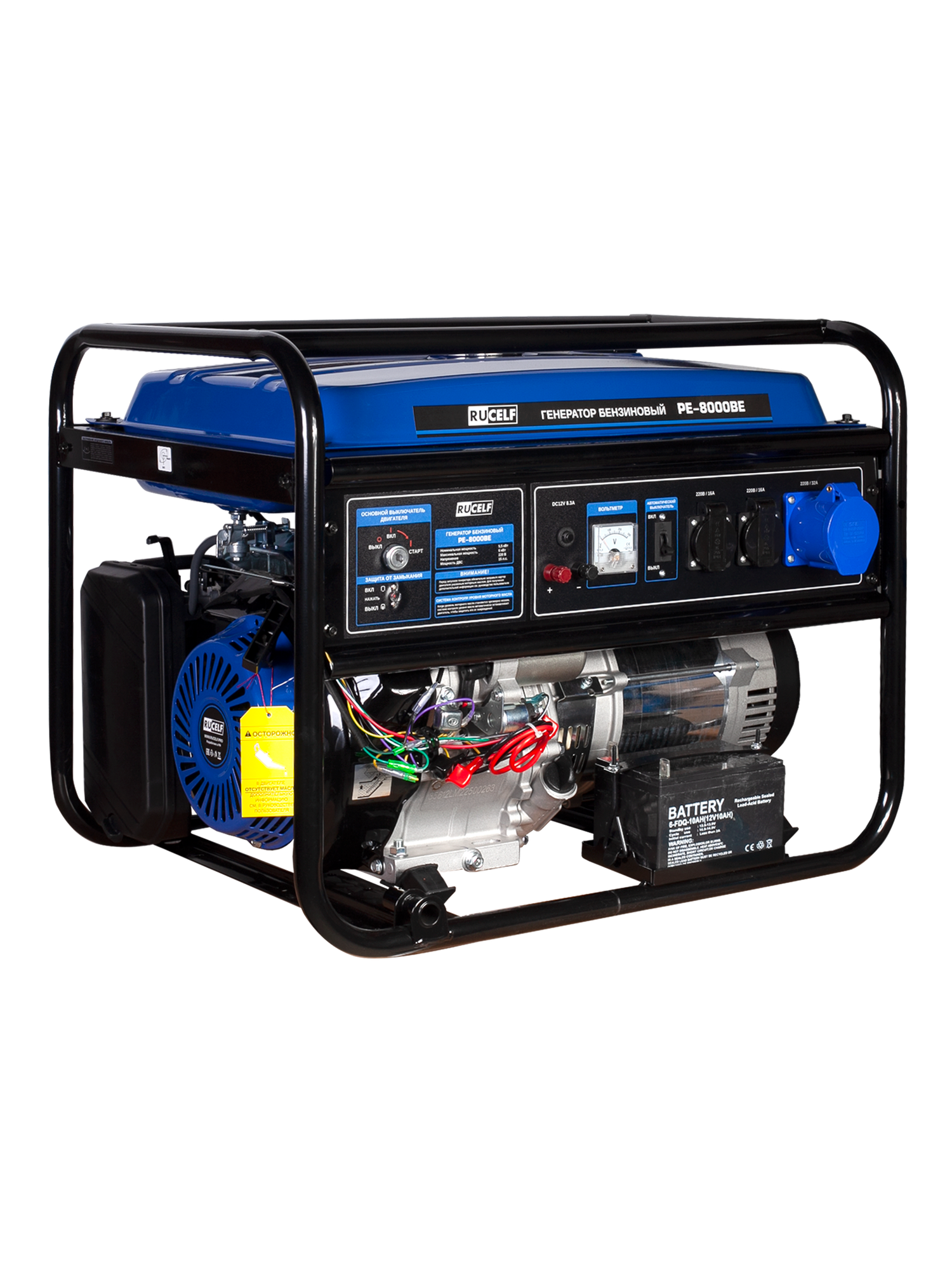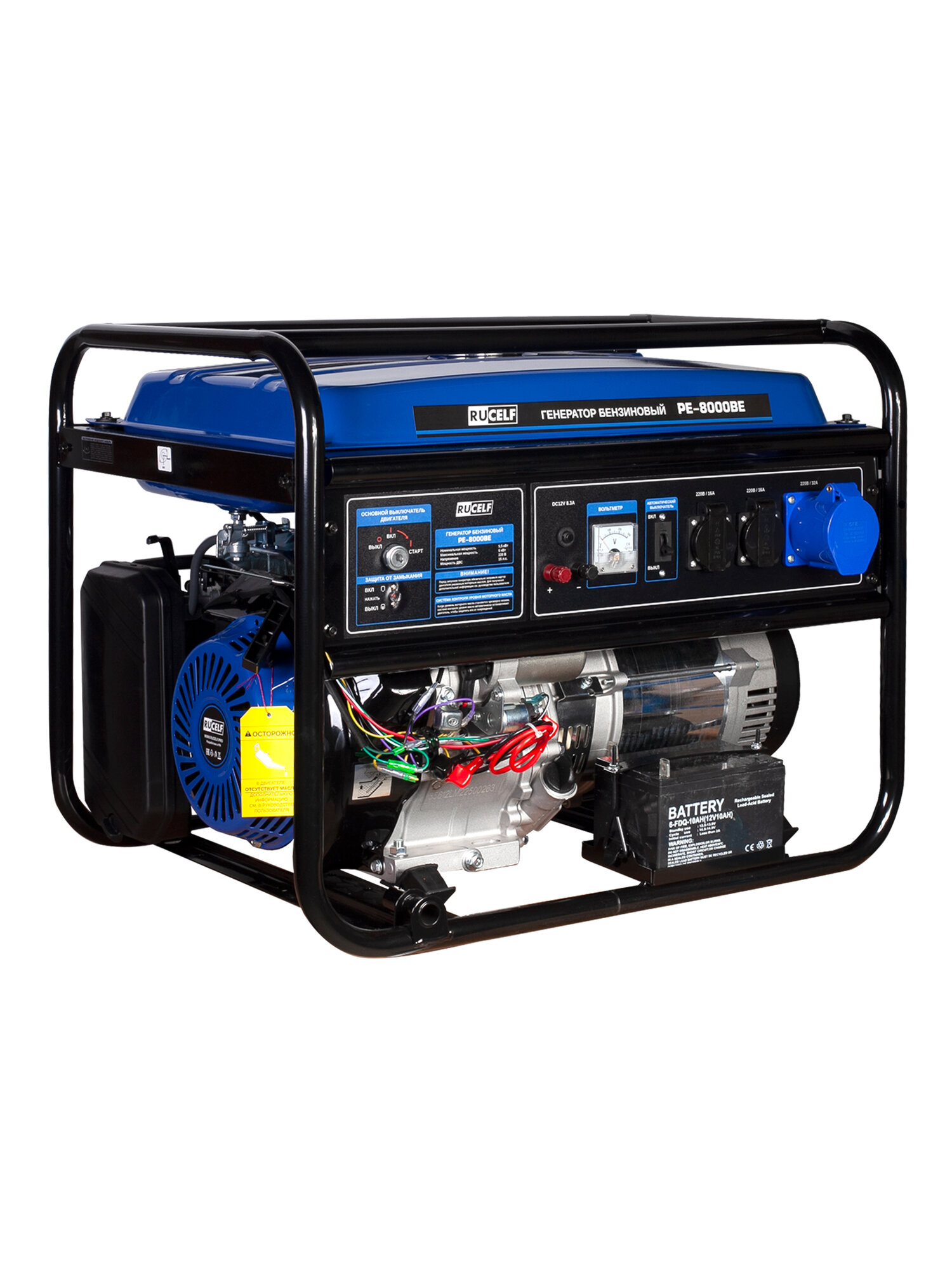 Электрогенератор бензиновый RUCELF PE-8000BE, электростартер+ ручной, ручки+колеса, с АКБ, медь, 6 КВт: сравнение цен, характеристики, фото, актуальное наличие и цены.