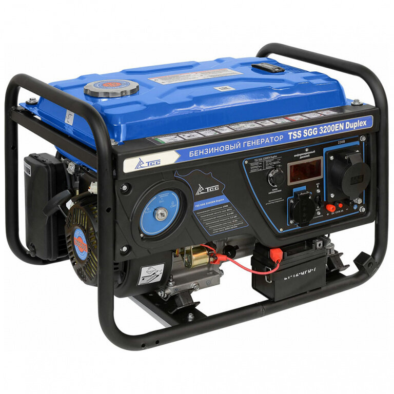 Бензиновый генератор с электростартом TSS SGG 3200EN Duplex при номинальной мощности равной 3,2 кВ, обеспечивает кратковременную пусковую мощность до 9 кВт (имеются в виду только пусковые токи высоконагруженных потребителей).