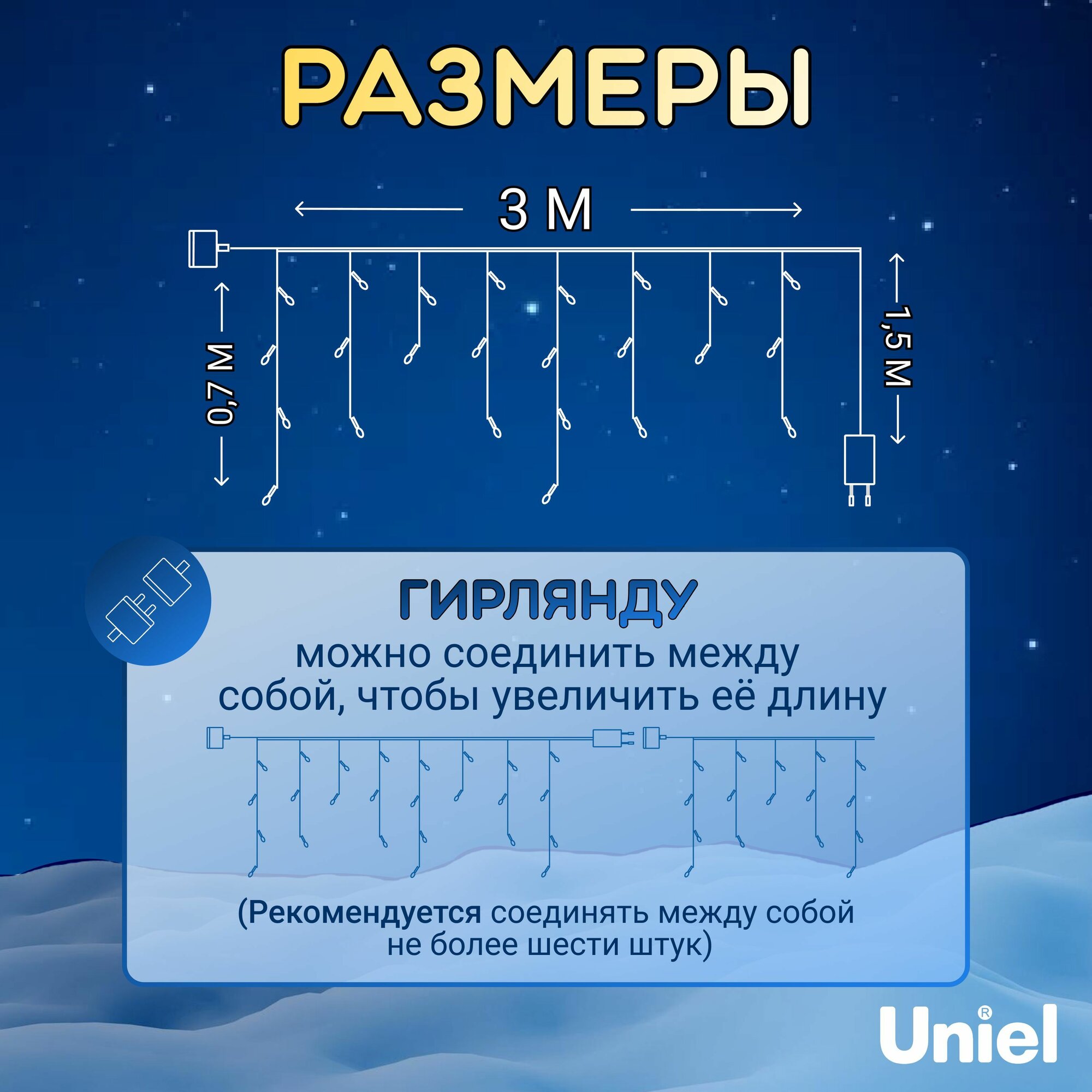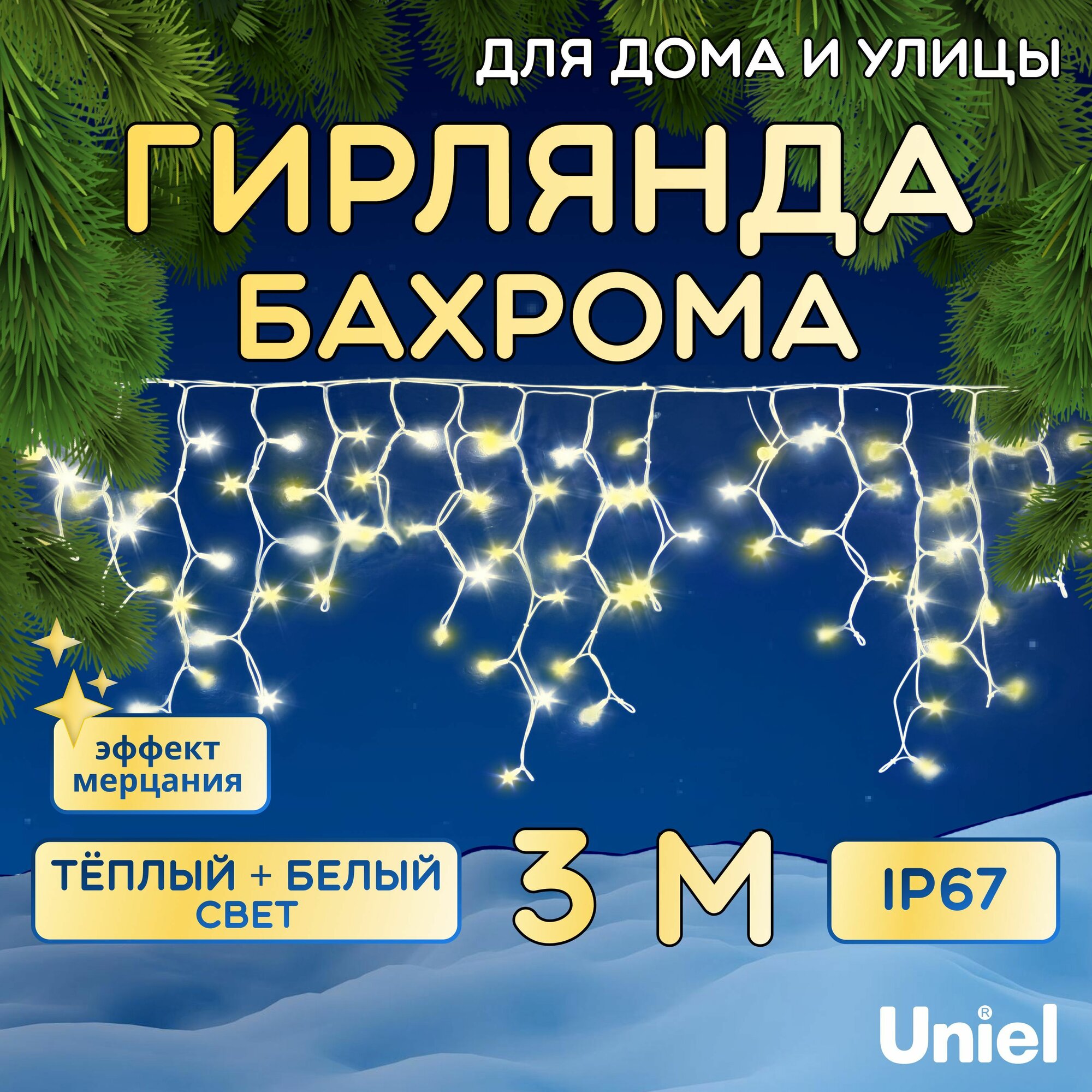 Электрогирлянда Бахрома 3 м, уличная, соединяемая, светодиодная. ULD-B3007-200/TBK WARMWHITE-WHITE IP67: сравнение цен, характеристики, фото, актуальное наличие и цены.