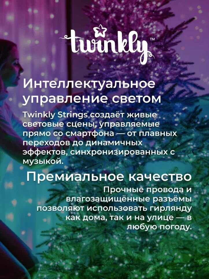 Электрогирлянда Twinkly Strings, 400 диодов RGB, длина 32 метра, разноцветная, черный провод, адресные диоды: сравнение цен, характеристики, фото, актуальное наличие и цены.