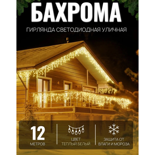 Купить Электрогирлянда уличная Бахрома 12м / Гирлянда светодиодная, питание от сети 220В, теплый свет с доставкой по всей России. Электрогирлянда уличная Бахрома 12м / Гирлянда светодиодная, питание от сети 220В, теплый свет: сравнение цен, характеристики, фото, актуальное наличие и цены.