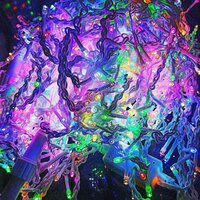 Длина гирлянды - 12 метров. Напряжение работы - 220 V. Цвет LED ламп разноцветный . провод -белый каучук. Возможность соединения - Да.
