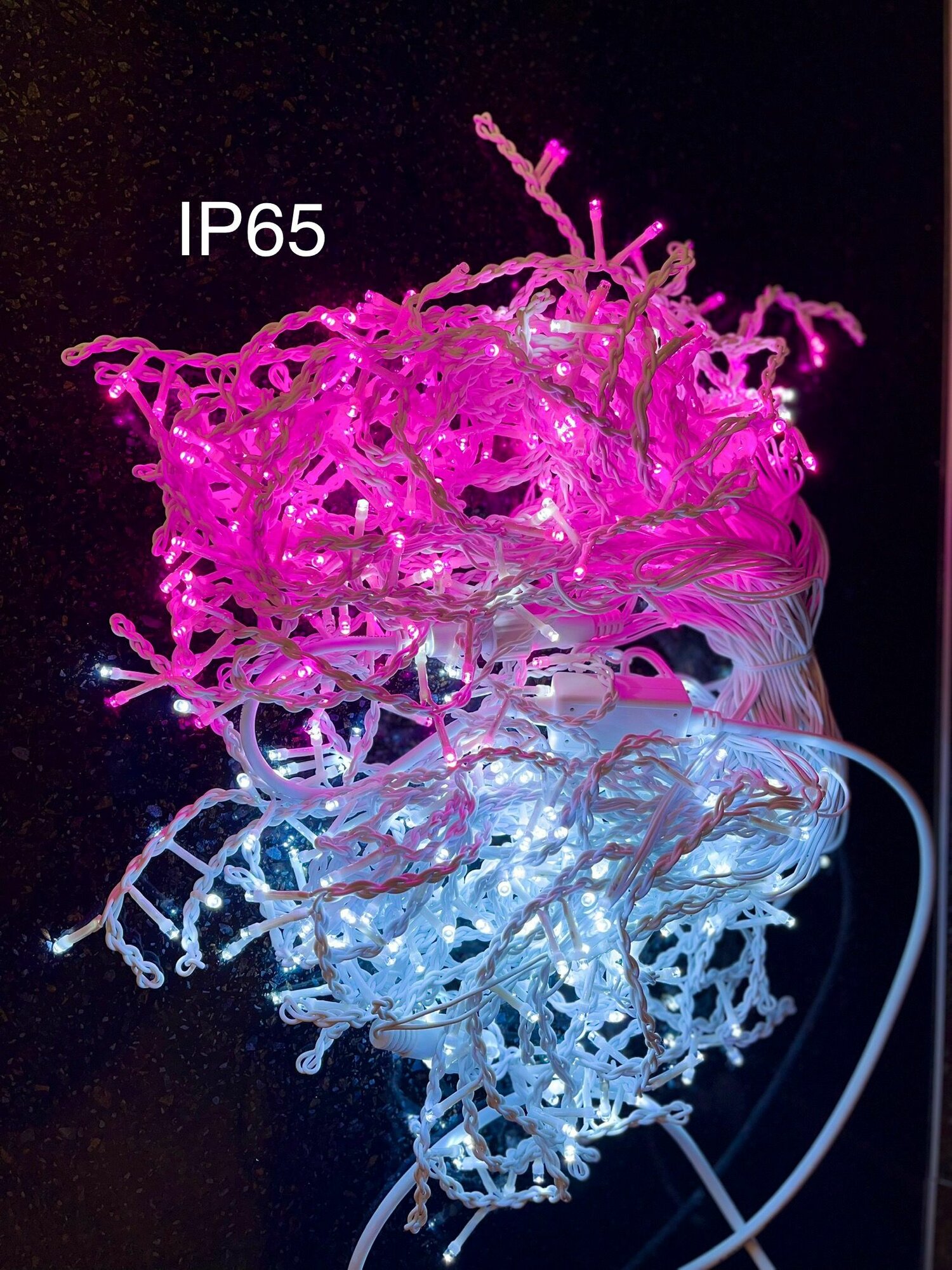 Длина гирлянды - 12 метров. Напряжение работы - 220 V. Цвет LED ламп разноцветный . провод -белый каучук. Возможность соединения - Да.